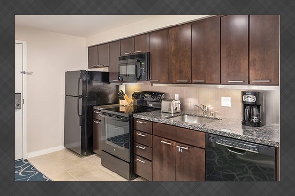 Your 2 Bedroom Suite has a full kitchen and sleeps up to 8.
