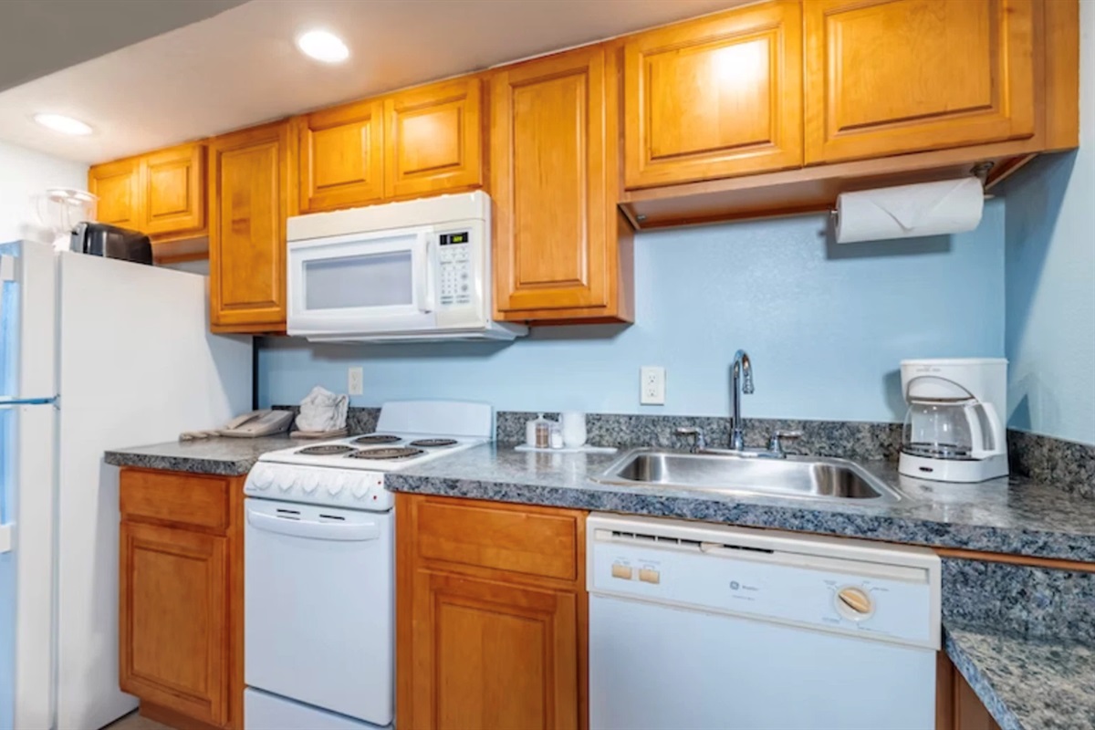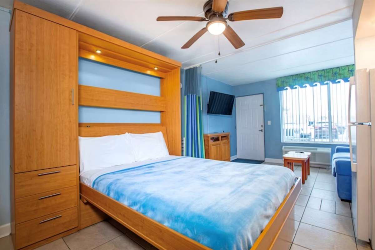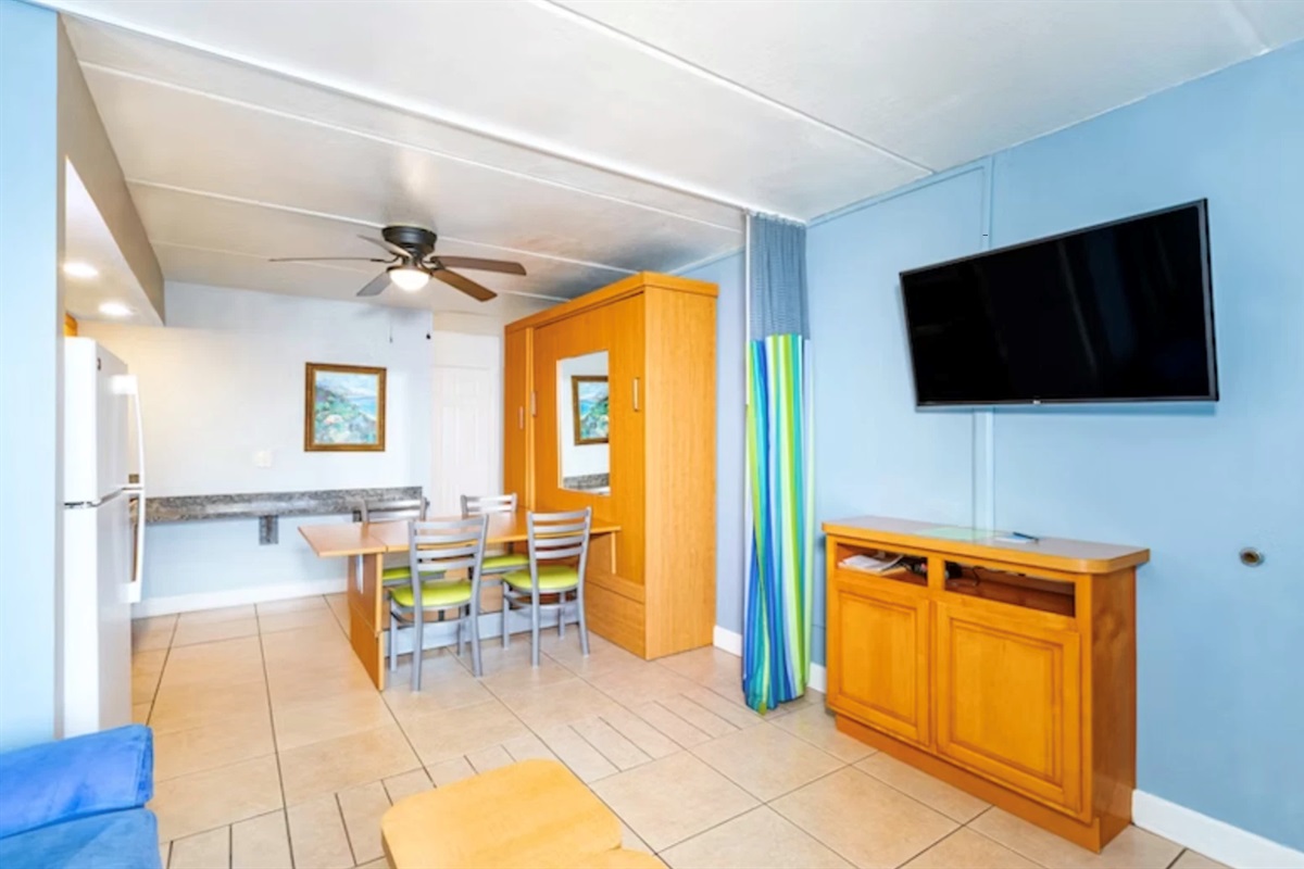 The studios feature a queen-size Murphy bed and a queen-size sofa bed, a kitchen, a living and dining area, a flat-screen TV, and complimentary Wi-Fi. Sleeps 4. We guarantee your stay will be amazing! (Please note: layouts/furnishings differ from our stock photos in the listing. There are multiple levels at the Fantasy Island Resort that the resorts assigns the rooms so we cannot guarantee views.)