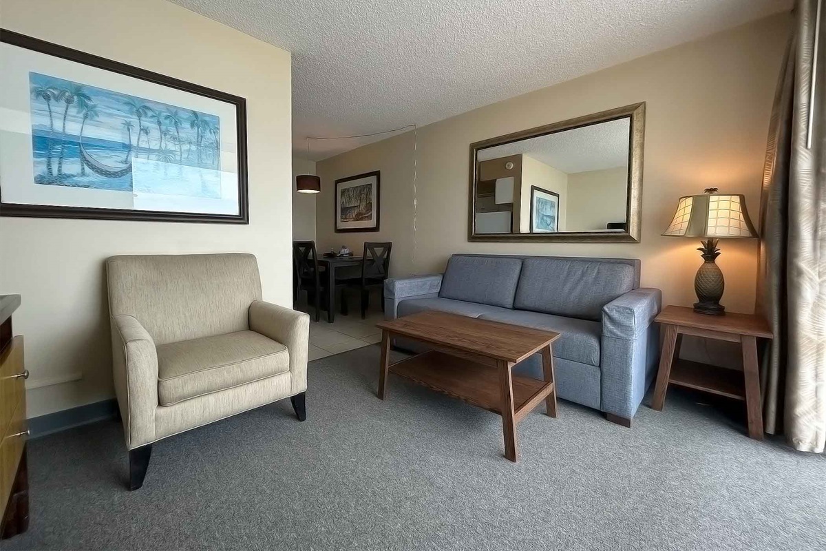 The one bedroom deluxe suite feature a queen-size bed or two full-size beds and a queen-size sofa bed, a mini kitchen, a living area, a flat-screen TV, and complimentary Wi-Fi. Sleeps 6. We guarantee your stay will be amazing! (Please note: layouts/furnishings differ from our stock photos in the listing. There are multiple levels at the Outrigger Beach Club that the resorts assigns the rooms so we cannot guarantee views.)