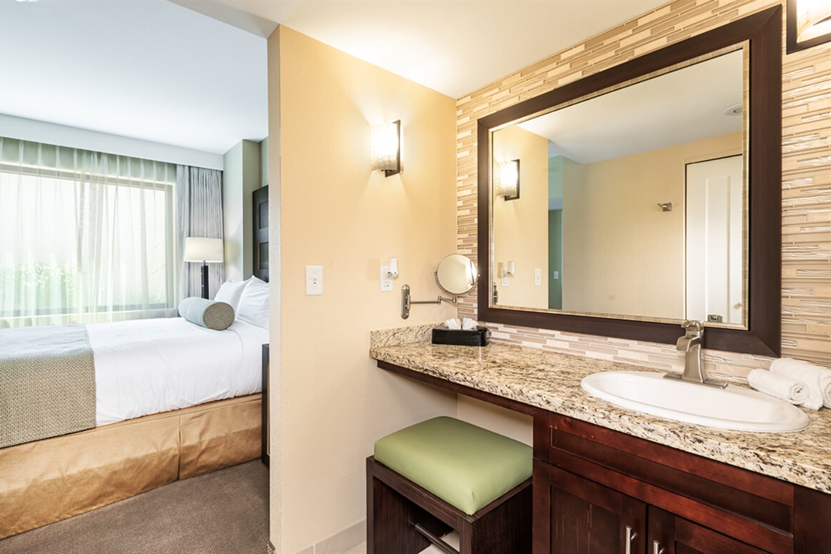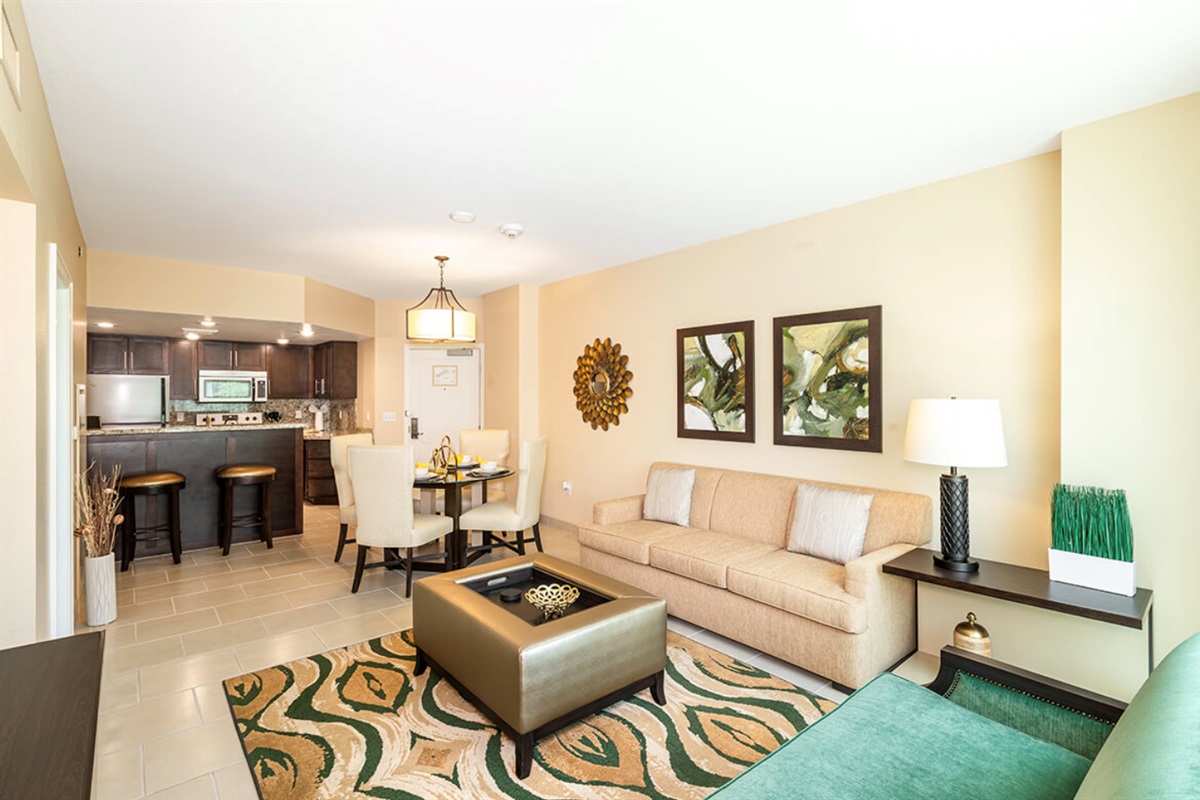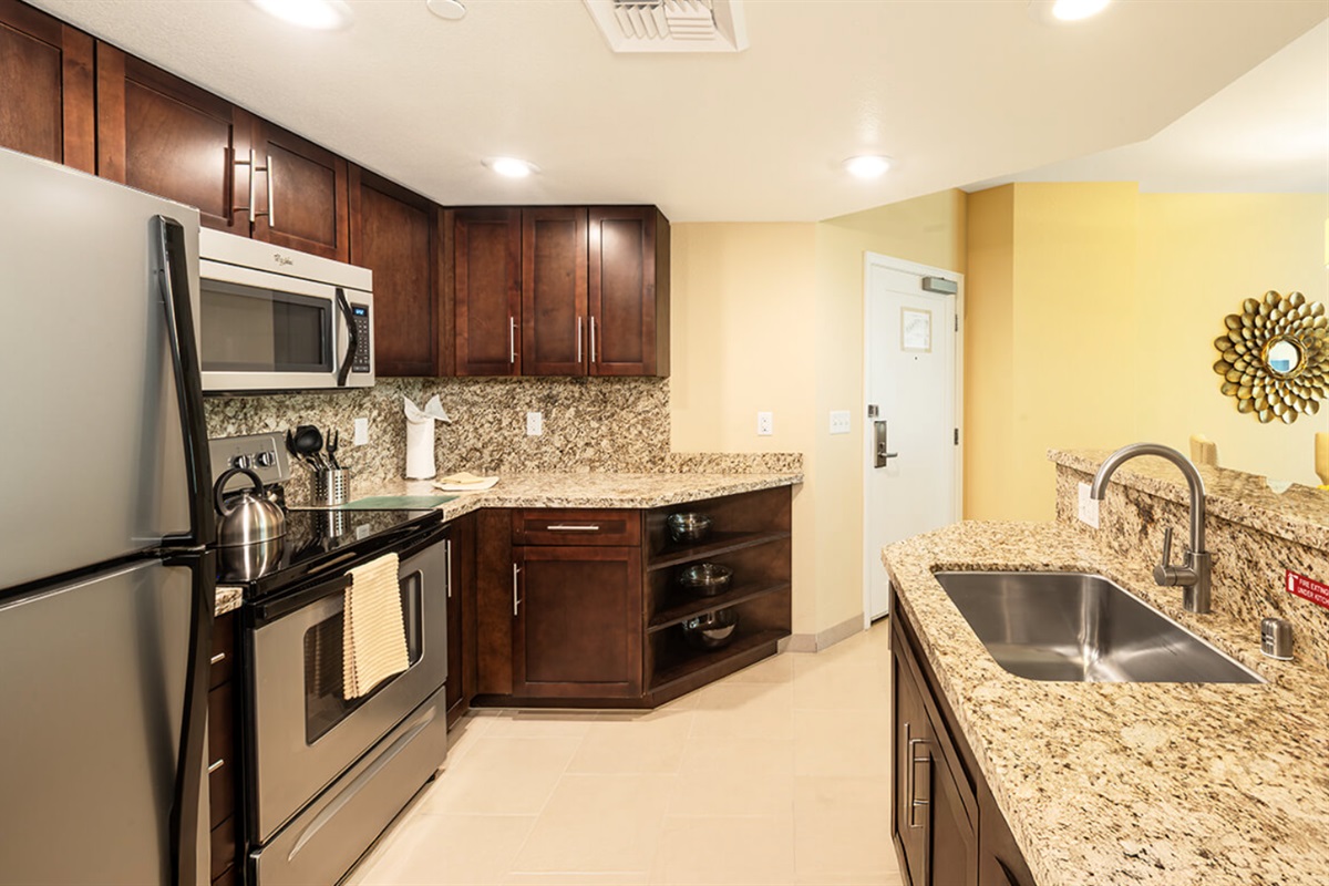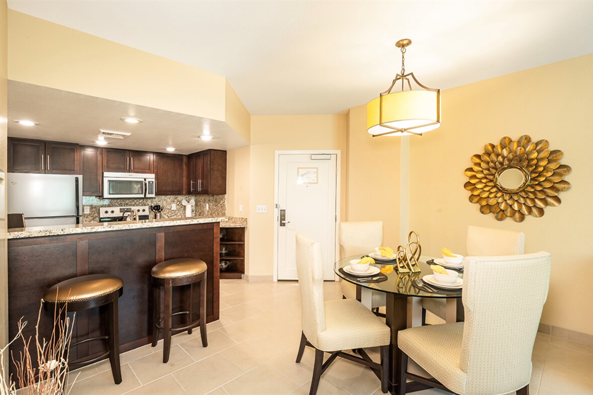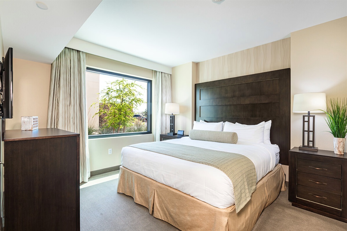 This spacious one-bedroom resort suite measures approximately 714 square feet. You will enjoy a king bed in the master bedroom and a queen sleeper sofa in the living room. Additional amenities include a full kitchen and dining area, and washer/dryer. Maximum occupancy is four. Private sleeping area sleeps two. We guarantee your stay will be amazing! (Please note: layouts/furnishings differ from our stock photos in the listing. There are multiple units at The Berkley, Las Vegas Resort that the resorts assigns the rooms so we cannot guarantee views.)
