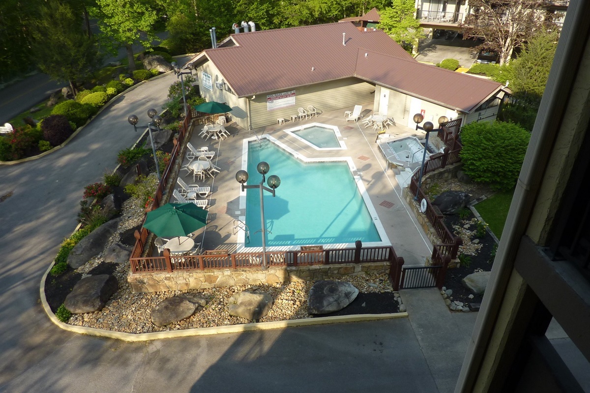 Surrounded by forests of hardwoods and pines, Tree Tops Resort sits on the banks of the Roaring Fork Creek where cascading, icy waters rush down from the surrounding mountain peaks. Experience the quiet, tranquil atmosphere and let one of 3 poolside spas soothe your tensions away. Or get out and see what the Great Smoky Mountains has to offer. Just minutes away, there are golf courses, horseback riding, fishing, hiking, skiing, or shopping in the quaint village of Gatlinburg.