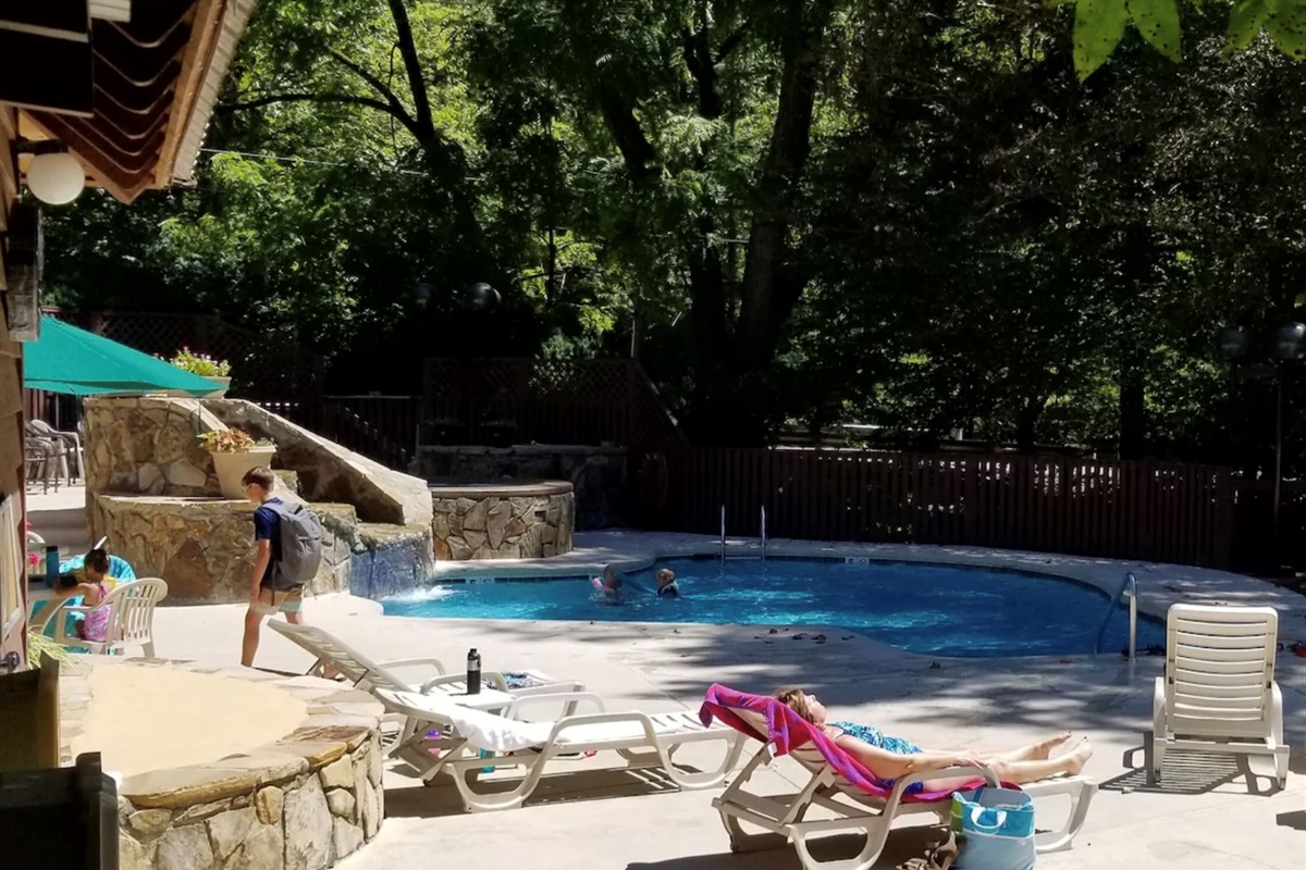 Surrounded by forests of hardwoods and pines, Tree Tops Resort sits on the banks of the Roaring Fork Creek where cascading, icy waters rush down from the surrounding mountain peaks. Experience the quiet, tranquil atmosphere and let one of 3 poolside spas soothe your tensions away. Or get out and see what the Great Smoky Mountains has to offer. Just minutes away, there are golf courses, horseback riding, fishing, hiking, skiing, or shopping in the quaint village of Gatlinburg.