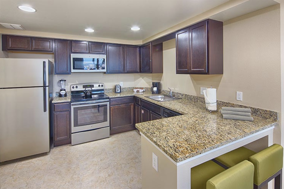 Your 1 BEDROOM UNIT will sleep up to 4 people and comes with a full kitchen. This suite offers one king bed and one queen sleeper sofa. The unit also includes a full kitchen space with amenities. This unit also includes a washer and dryer in most units and also a balcony/patio. We guarantee your stay will be amazing! (Please note: layouts/furnishings differ from our stock photos in the listing. There are multiple levels at Vacation Village at Parkway that the resorts assigns the rooms so we cannot guarantee views.)