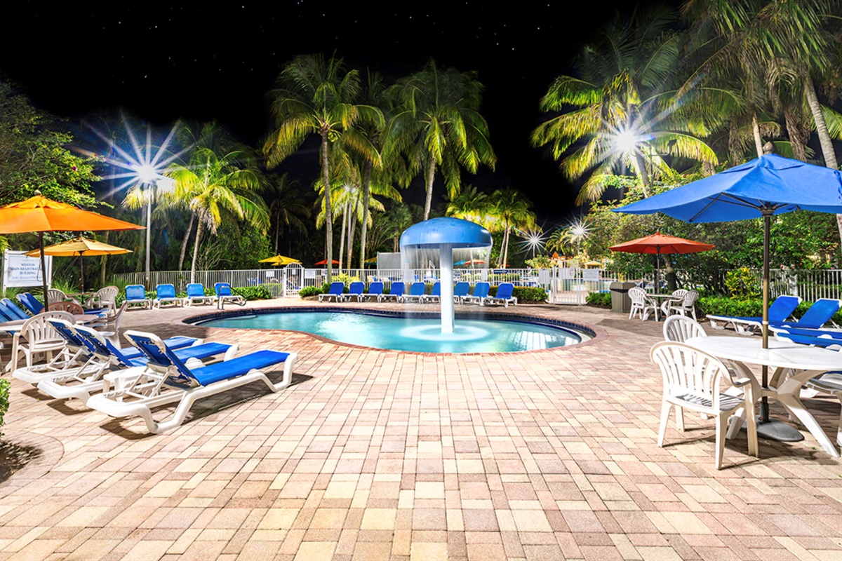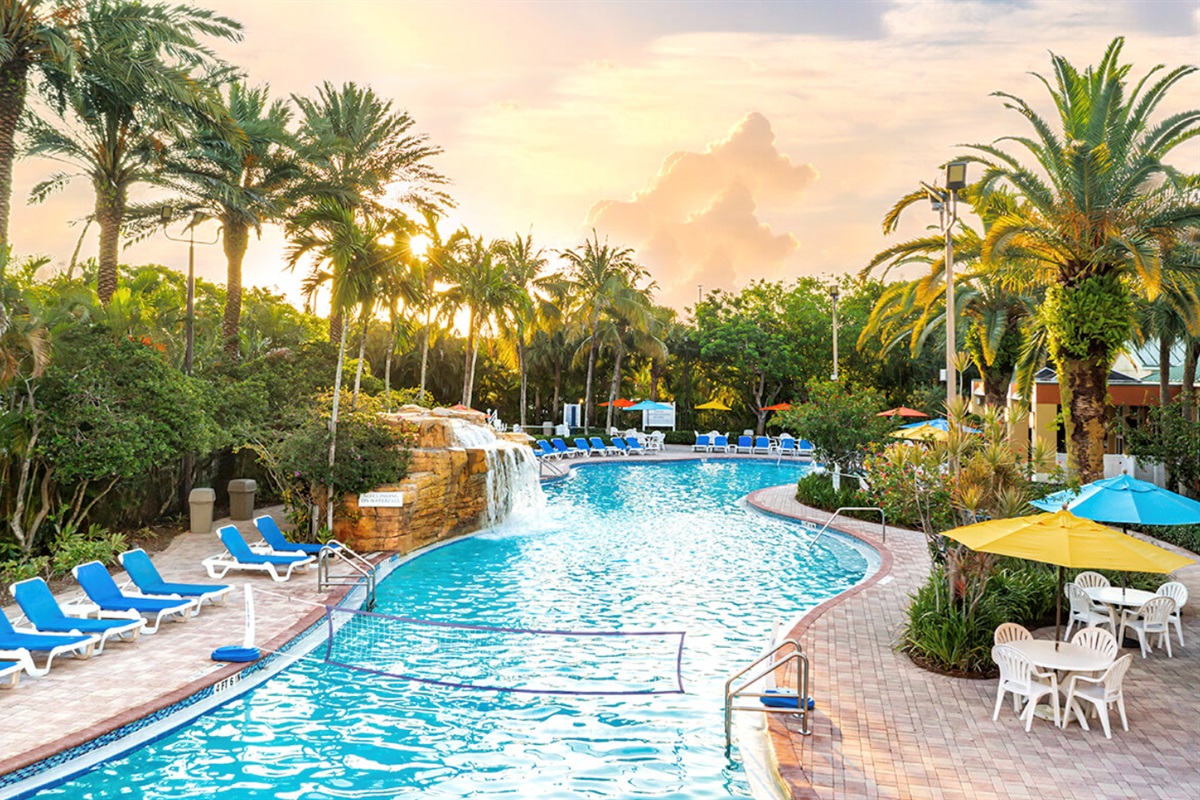 Vacation Village at Weston is approximately twenty minutes from Fort Lauderdale Beach and one hour from Miami Beach. At the resort, you can relax by the swimming pool’s waterfall feature, soak in the hot tub, or work out in one of the two fitness centers. Play a game of tennis or go horseback riding nearby. The resort has a wide range of activities for the whole family to enjoy, including poolside Bingo, Latin dance, and movie night.